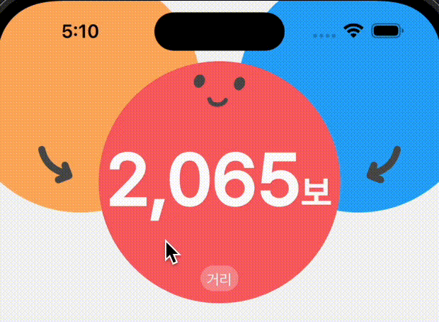 - 드래그 제스처가 감지되면, 위젯은 타원의 자취를 그리며 회전을 한다.